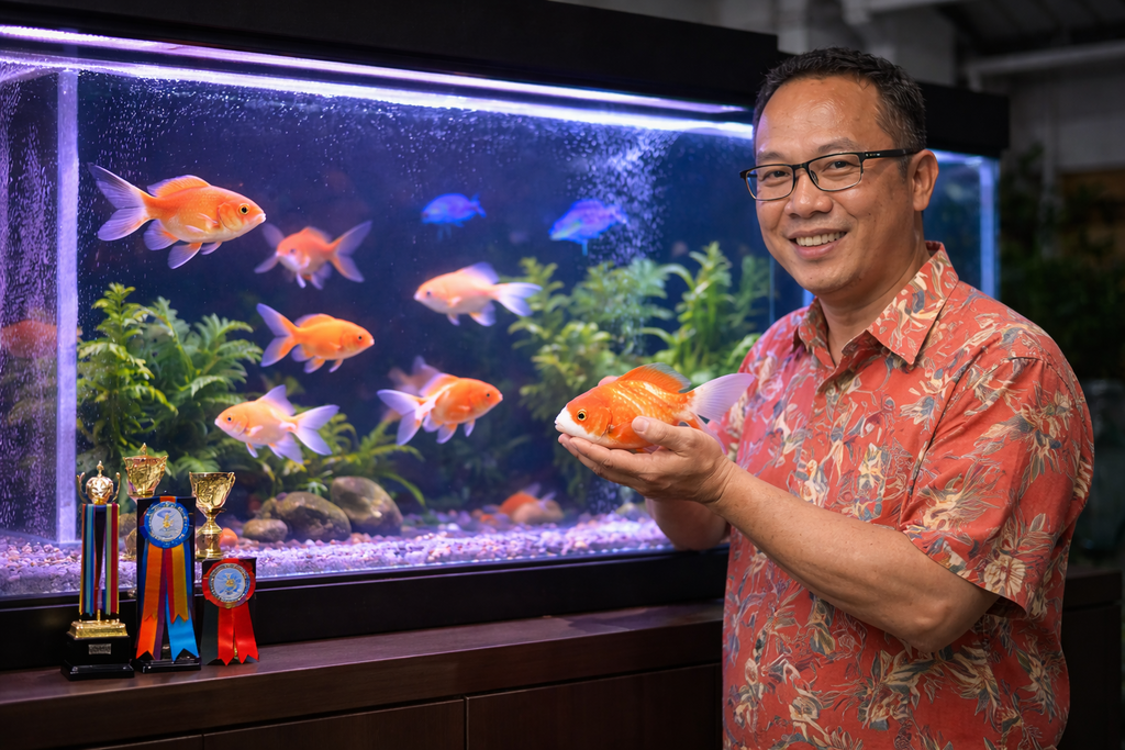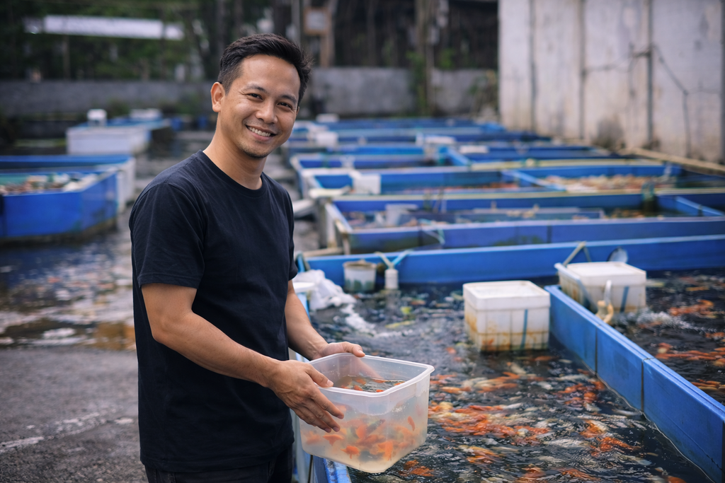 Dengan pengalaman lebih dari satu dekade di dunia ikan hias, pendiri Batara Farm dikenal sebagai sosok yang telaten, sabar, dan memahami karakteristik ikan mas koki.